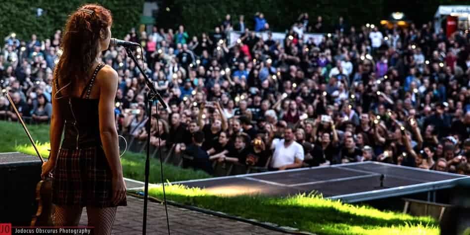 Für uns wird es auch Zeit, uns zu richten und schließlich geht es um 19.15 Uhr auf die Bretter, die heute sogar gemauert sind. Endlich wieder ein volles Set spielen! Es wird ein schöner Auftritt vor toller Kulise im Stadtpark, der zu meinen persönlichen Lieblingslocations gehört.