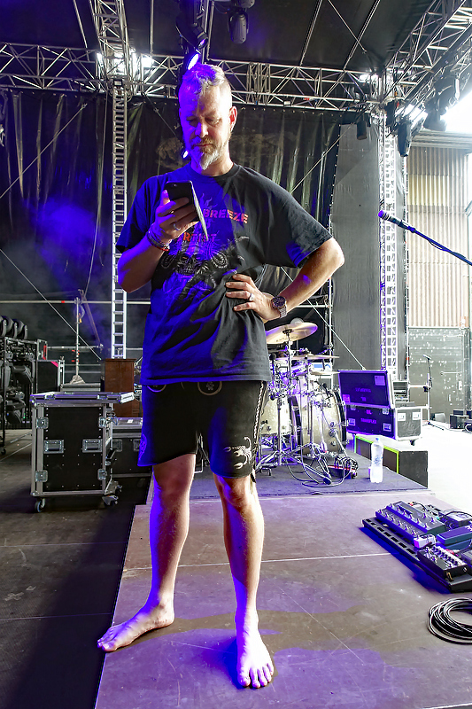 In Extremo haben Verspätung und so zerfällt der Tagesplan zu Staub. Es wird einfach auf Zuruf gearbeitet und unsere Crew nutzt die Lücken, um schon mal mit unserem Aufbau zu beginnen. Der Soundcheck entfällt und wir haben Zeit, unser neues Spielzeug auszuprobieren: Eine Kameradrohne. Stefan hat sich schon im Vorfeld schlau gemacht und so suchen wir Flug- und Filmmöglichkeiten. Geiles Teil, sowas will ich auch… Wir machen Band- und Geländeaufnahmen und nutzen die Zeit.
