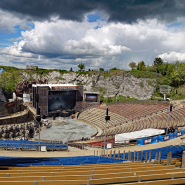 Der neue Tag beginnt früh. Es ist sonnig und ich sehe mich in einer Westernstadt. Kein Wunder, hier auf der Freilichtbühne in Bad Segeberg finden alljährlich die Karl May Festspiele statt. Entsprechend ist alles darauf hin gebaut. Bitterkalt ist es zusätzlich, passend zum ersten Open Air. Im Laufe des Tages gibt es ein paar Schneeflocken und einen bissigen Wind. Gut, dass wir alle an warme Klamotten gedacht haben… Ein Shuttle bringt mich zum Backstage, das ist beheizt und es lässt sich aushalten.