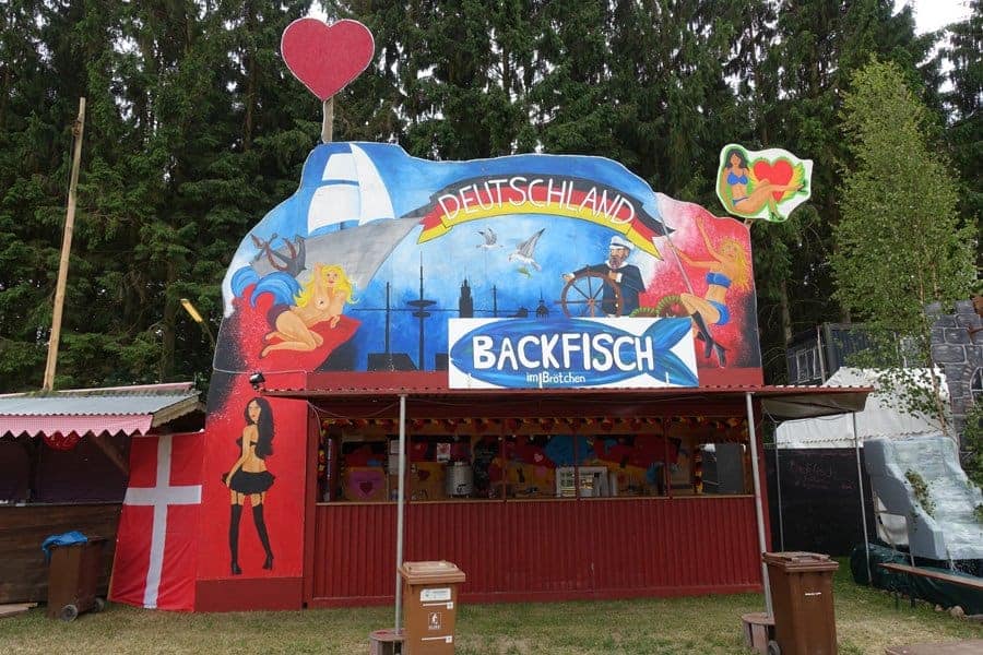 Nach einem üppigen Mahl lege ich mich noch ein Stündchen hin, dann hält mich nichts mehr in der Koje. Noch ein wenig beisammen sitzen auf der Terrasse der Eiche, wobei bereits die ersten Festivalbesucher dazukommen. Ob wir extra wegen Schandmaul so weit angereist sind, will einer wissen. Ja, das könnte man schon so sagen…